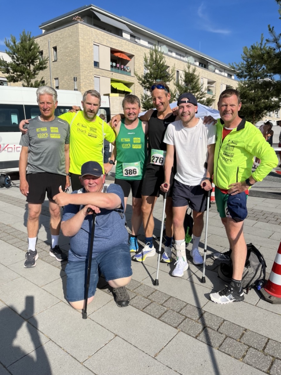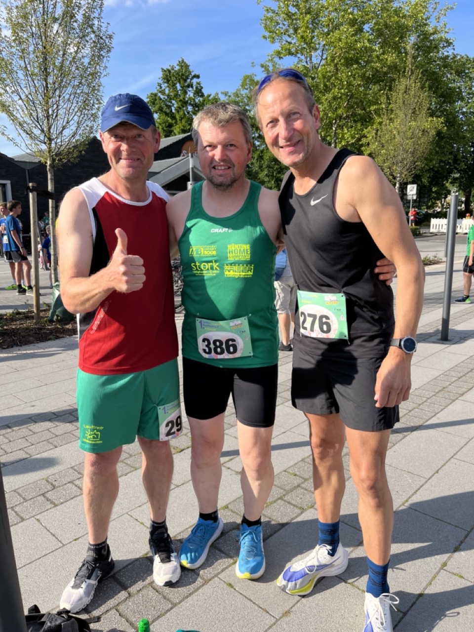 An Fronleichnam, am 16.06.2022, fand der 1. Selmer Stadtfestlauf, bei sonnigem, leicht schwülen Sommerwetter, im Rahmen des Selmer Stadtfestes statt. Organisiert wurde das Laufevent von der Stadt Selm, dem FoKuS und dem TriTeam. Gelaufen wurde an diesem Tag durch und um die erst neu gestaltete Auenparklandschaft. Der an diesem Tag zu laufende 2,5km lange Rundkurs für die längeren, an diesem Tag angebotenen, Laufstrecken erstreckte sich über das Sportplatzgelände, den Auenpark und das Campus Nord Gelände. Die Strecke war sehr flach, mit viel asphaltiertem Untergrund, jedoch mit der ein oder anderen Spitzkehre. Die erste Auflage der Laufveranstaltung beinhaltete einen Bambini-Lauf über 800m, einen Jedermannlauf über 5km und einen Lauf über die Königsdistanz über 10km. Probleme an diesem Tag tauchten leider bei der nicht amtlich vermessenden Laufstrecke auf. Die ausgeschriebene 2,5km lange Rundstrecke war mit nur ~2,3km etwas zu kurz abgemessen worden. Damit war die 5km Renndistanz nur effektiv ~4,5km lang und die 10km Renndistanz ~9,1km lang. Sprich die Endzeiten der Athletinnen und Athleten sind mit Vorsicht zu genießen. (ca. +3min) Trotz alle dem purzelten an diesem Tage viele, viele Bestzeiten. Der Lauftreff war an diesem Tag mit 5 Läufern auf der 10km Distanz am Start. Maskottchen Ecki und der verletzte Läufer Linus feuerten am Streckenrand lautstark an. Das Starterfeld des 10km Laufes bestand dabei aus gerade einmal 42 Teilnehmerinnen und Teilnehmern. Andreas Koch, AK M50 erreicht als erster Lüdinghauser, nach unfassbaren 35:17min, die Ziellinie am Sandforter Weg. Er wurde 4. Gesamtplatz. Magnus Nibbenhagen, AK M55 erreichte sichtlich zufrieden die Ziellinie nach den 4 Runden in einer Zielzeit von 40:46min und einem 9. Gesamtplatz. Dicht gefolgt von Thomas Holtmann, AK M50, welche nur ca. 2 Minuten später, nämlich nach 42:32min die Ziellinie überquerte. Im Anschluss erreichte der Lauftreffler Richard Deters, AK M60, das wohlverdiente Ziel nach 43:43min. Schnapszahl – welche Er im Anschluss an das Event mit einem von ihm eingeladenen Umtrunk feierte. DANKE. Das Läuferfeld aus Lüdinghausen komplettierte Torsten Koch AK M40 nach 44:38min. Er landete den 19. Gesamtplatz im Starterfeld. Im Verlauf der Veranstaltung erschien Christoph Schlütermann noch mit seinem Gravel-Bike zum tatkräftigen anfeuern und unterstützen des Teams. Im Anschluss an das Rennen gab es in gemeinsamer Runde das obligatorische Kaltgetränk. Leider wurde das Event mit zu wenig Werbung publiziert, sodass das Event von der Anzahl der Starter*innen überschaubar war. Jedoch wird sich das in den kommenden Jahren mit Sicherheit ändern und das Teilnehmerfeld wird sich sukzessiv steigern. Das Event war wirklich eine tolle Veranstaltung! Großes Lob an die Veranstalter aus Selm.